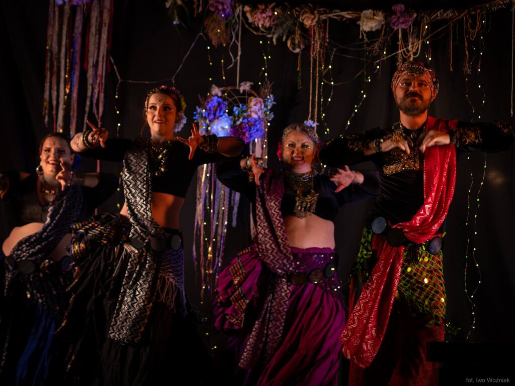 Stroje: Kostiumy w FCBD® są bogate i kolorowe, składają się z szerokich spódnic, choli, staników ozdobionych monetami, kwiatów we włosach lub turbanów i etnicznej biżuterii.